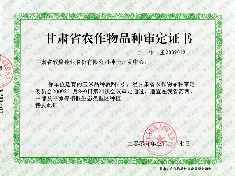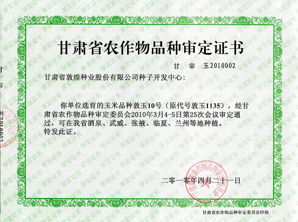 敦玉328品種審定證書(shū)(甘肅)